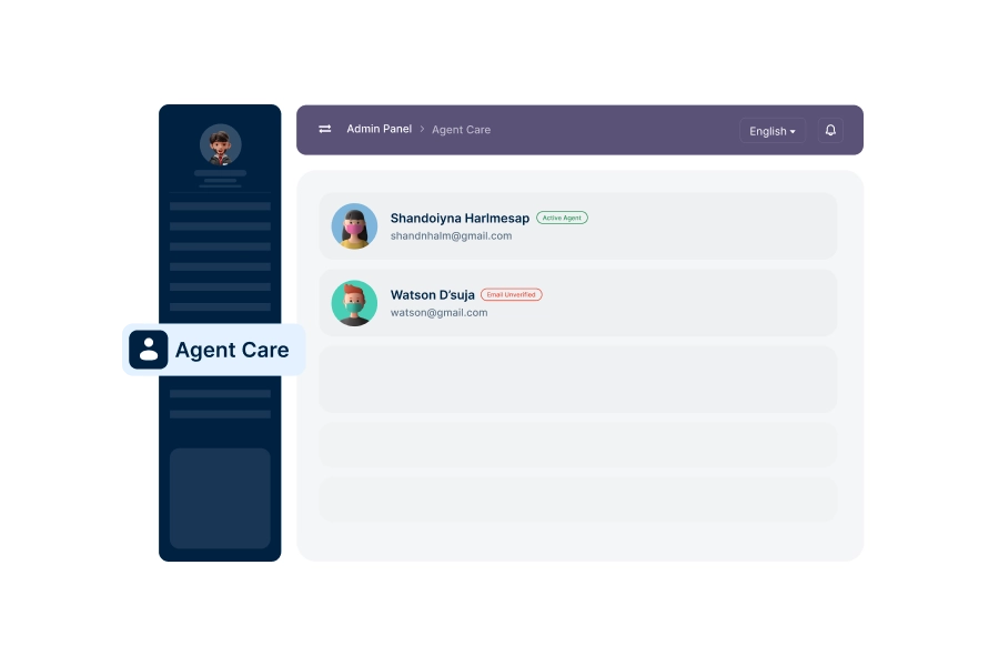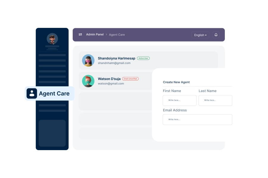 Manually add new agents directly from the admin panel. Each agent will be fully managed and monitored by the system.