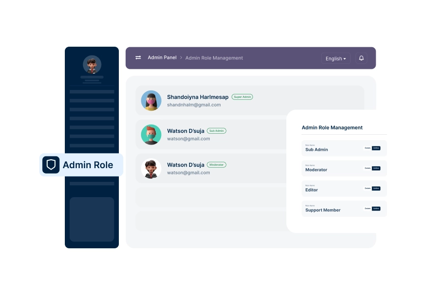 Assign and manage admin roles and permissions, ensuring secure and organized system administration.
