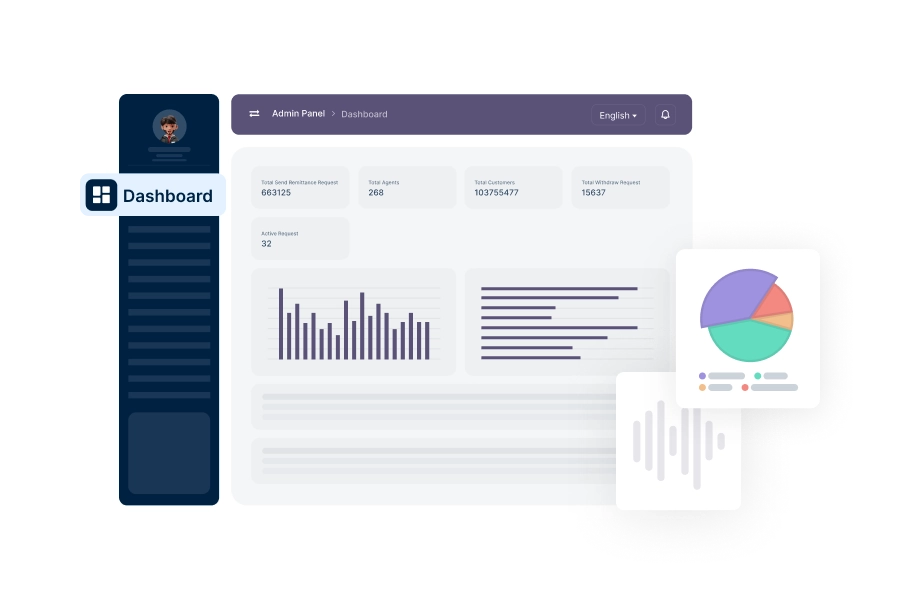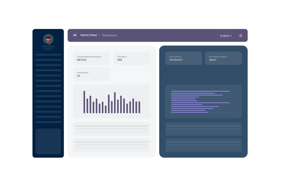 Comprehensive admin tools to manage remittance operations, including agent management, transaction monitoring, compliance controls, financial tracking, and system configuration for optimal platform performance and security.