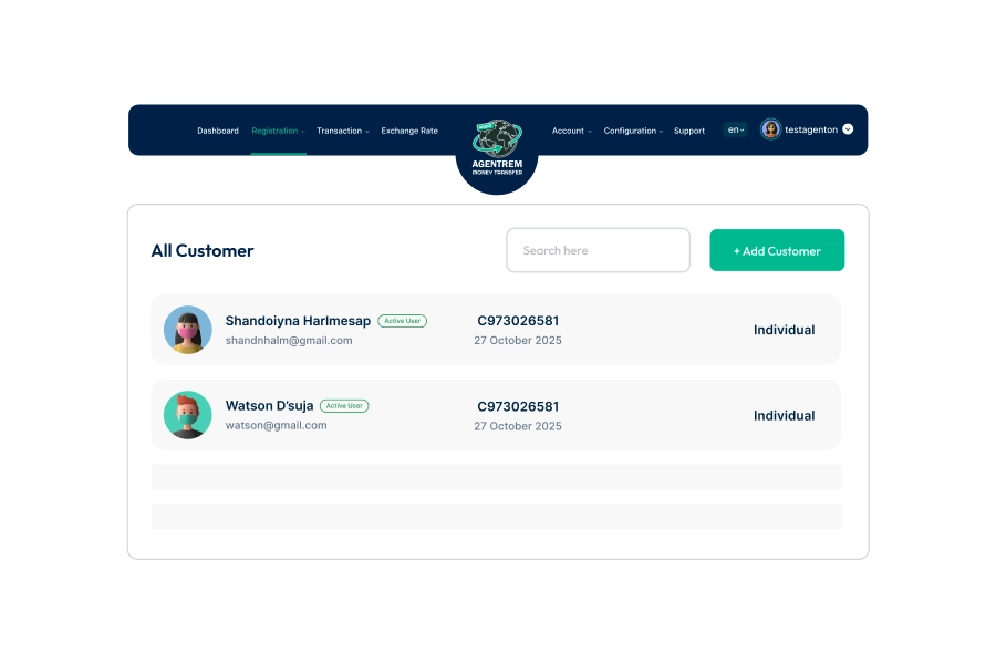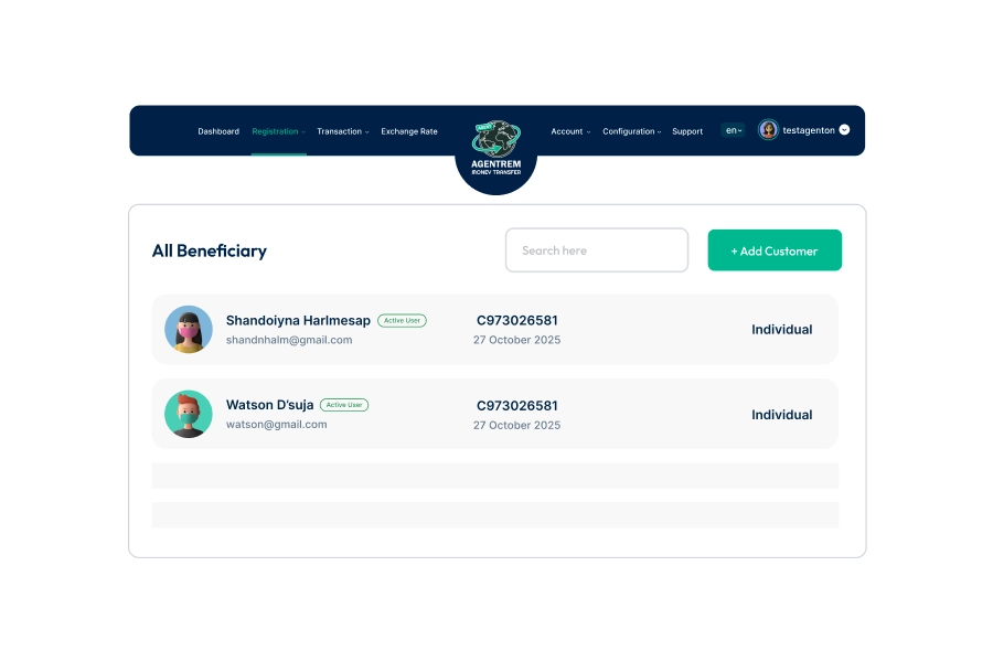 Comprehensive remittance management tools for agents - streamline transactions, customer management, beneficiary handling, and compliance with our all-in-one platform for global money transfers.