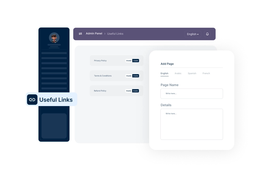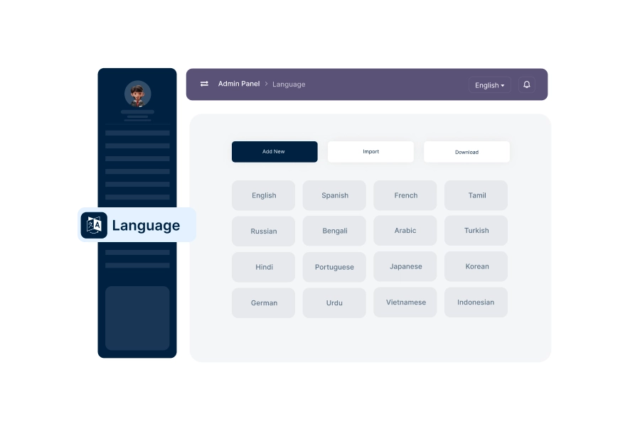 Add and manage languages available on the platform, providing a multilingual experience for users.