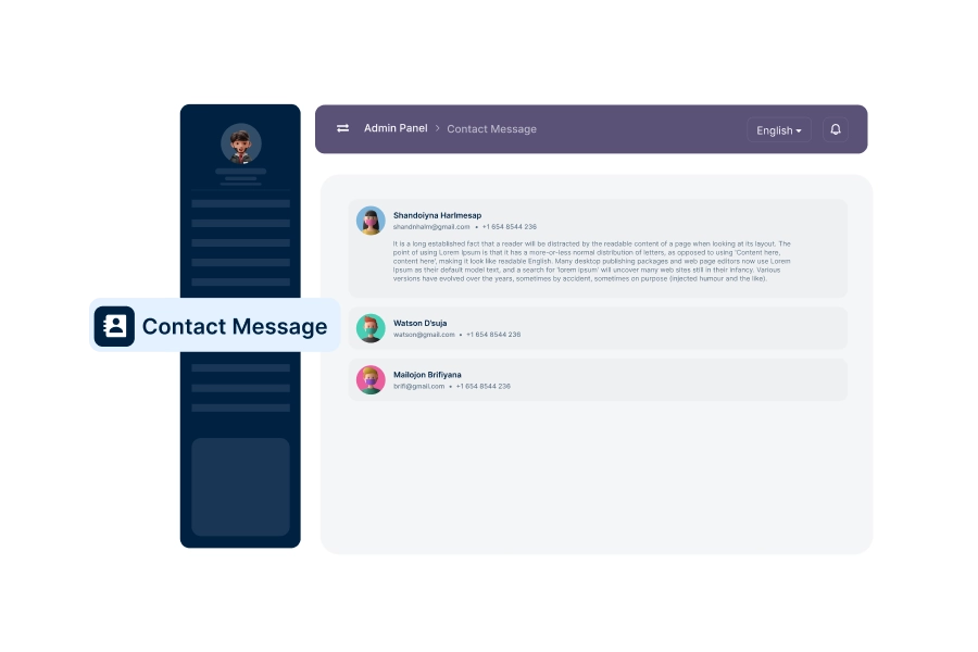 Handle and respond to contact form messages or inquiries from users directly from the dashboard.