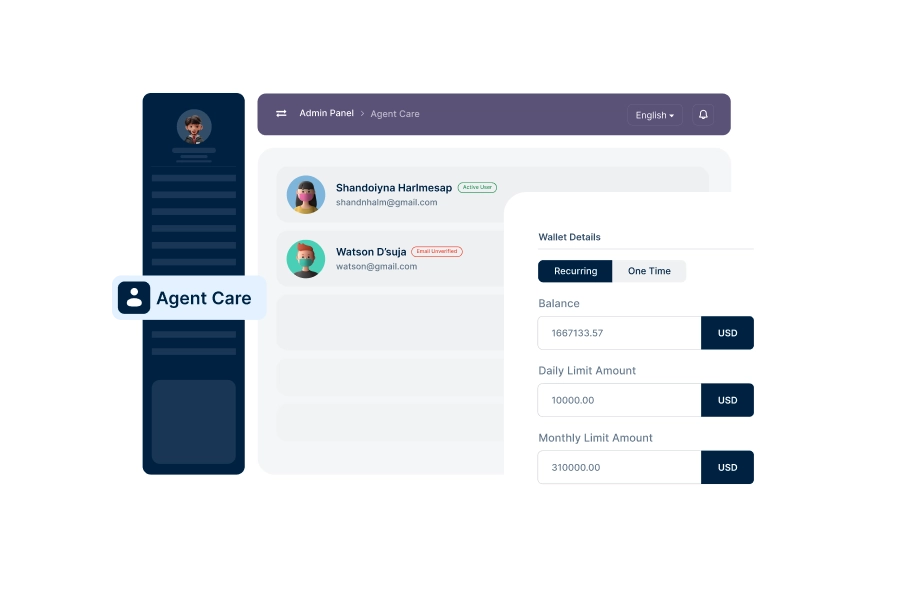 Assign each agent a wallet balance, daily transaction limit, and monthly transaction limit to ensure smooth and secure operations.
