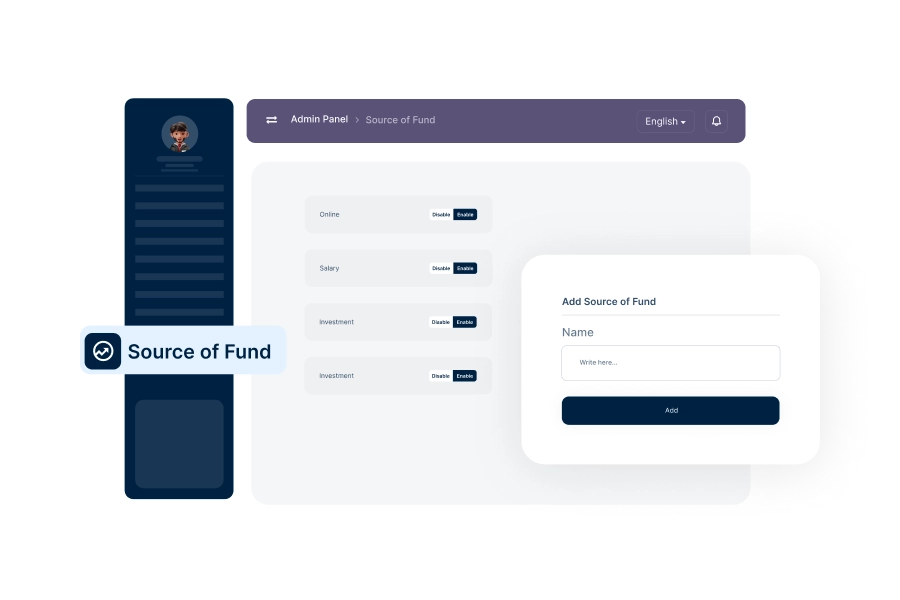 Define different types of fund sources (like salary, savings, or business income) to meet compliance and regulatory requirements.
